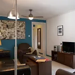 Denna lägenhet på 60 m^2 har utsikt över trädgården samt soffa, sitthörna och satellit-TV. Lägenheten består av 1 sovrum och 1 badrum med separat toalett och dusch.
